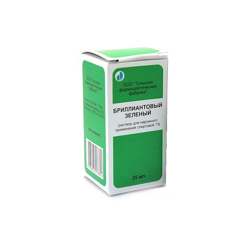 Инструкция по применению Бриллиантовый зеленый 1% раствор для наружного применения спиртовой 25 мл