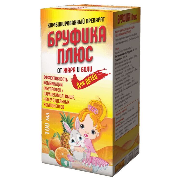 Бруфика Плюс 100 мг+162,5 мг/5 мл суспензия для приема внутрь Для детей 100 мл 1 шт