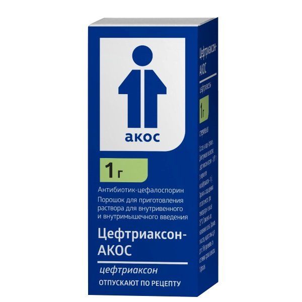 Цефтриаксон-АКОС 1 г порошок для приготовления раствора для внутривенного и внутримышечного введения 50 шт