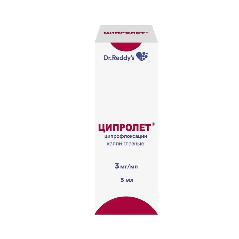 Показания В офтальмологии: лечение язв роговицы и инфекций переднего отрезка глазного яблока и его придатков, вызванных чувствительными к ципрофлоксацину бактериями у взрослых, новорожденных (от 0 до 27 дней), грудных детей и младенцев (от 28 дней до 23 месяцев), детей (от 2 до 11 лет) и подростков (от 12 до 18 лет). В оториноларингологии: наружный отит, лечение послеоперационных инфекционных осложнений. Фармакологическое действие Противомикробное средство широкого спектра действия, производное фторхинолона. Подавляет бактериальную ДНК-гиразу (топоизомеразы II и IV, ответственные за процесс суперспирализации хромосомной ДНК вокруг ядерной РНК, что необходимо для считывания генетической информации), нарушает синтез ДНК, рост и деление бактерий; вызывает выраженные морфологические изменения (в т.ч. клеточной стенки и мембран) и быструю гибель бактериальной клетки. Действует бактерицидно на грамотрицательные организмы в период покоя и деления (т.к.влияет не только на ДНК-гиразу, но и вызывает лизис клеточной стенки), на грамположительные микроорганизмы - только в период деления. Низкая токсичность для клеток макроорганизма объясняется отсутствием в них ДНК- гиразы. На фоне приема ципрофлоксацина не происходит параллельной выработки устойчивости к другим антибиотикам, не принадлежащим к группе ингибиторов гиразы, что делает его высокоэффективным по отношению к бактериям, которые устойчивы, например, к аминогликозидам, пенициллинам, цефалоспоринам, тетрациклинам и многим другим антибиотикам. К ципрофлоксацину чувствительны грамотрицательные аэробные бактерии: энтеробактерии (Escherichia coli, Salmonella spp., Shigella spp., Citrobacter spp., Klebsiella spp., Enterobacter spp., Proteus mirabilis, Proteus vulgaris, Serratia marcescens, Hafnia alvei, Edwardsiella tarda, Providencia spp., Morganella morganii, Vibrio spp., Yersinia spp.), другие грамотрицательные бактерии (Haemophilus spp., Pseudomonas aeruginosa, Moraxella catarrhalis, Aeromonas spp., Pasteurella multocida, Plesiomonas shigelloides, Campylobacter jejuni, Neisseria spp.), некоторые внутриклеточные возбудители (Legionella pneumophila, Brucella spp., Chlamydia trachomatis, Listeria monocytogenes, Mycobacterium tuberculosis, Mycobacterium kansasii, Corynebacterium diphtheriae); грамположительные аэробные бактерии: Staphylococcus spp. (Staphylococcus aureus, Staphylococcus haemolyticus, Staphylococcus hominis, Staphylococcus saprophyticus), Streptococcus spp. (Streptococcus pyogenes, Streptococcus agalactiae). Большинство стафилококков, устойчивых к метициллину, резистентны и к ципрофлоксацину. Чувствительность Streptococcus pneumoniae, Enterococcus faecalis, Mycobacterium avium (расположенных внутриклеточно) - умеренная (для их подавления требуются высокие концентрации). К препарату резистентны: Bacteroides fragilis, Pseudomonas cepacia, Pseudomonas maltophilia, Ureaplasma urealyticum, Clostridium difficile, Nocardia asteroides. Неэффективен в отношении Treponema pallidum. Резистентность развивается крайне медленно, поскольку с одной стороны, после действия ципрофлоксацина практически не остается персистирующих микроорганизмов, а с другой - у бактериальных клеток нет ферментов, инактивирующих его. Лекарственное взаимодействие Принимая во внимание низкую системную концентрацию ципрофлоксацина в плазме после инстилляции в конъюнктивальную полость, взаимодействие между совместно применяемыми с ципрофлоксацином препаратами маловероятно. В случае совместного применения с другими местными офтальмологическими препаратами интервал между их применением должен составлять не менее 5 мин, при этом глазные мази необходимо применять в последнюю очередь.