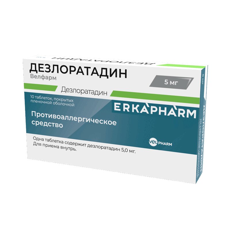 Дезлоратадин Велфарм 5 мг таблетки покрытые пленочной оболочкой 10 шт Эркафарм
