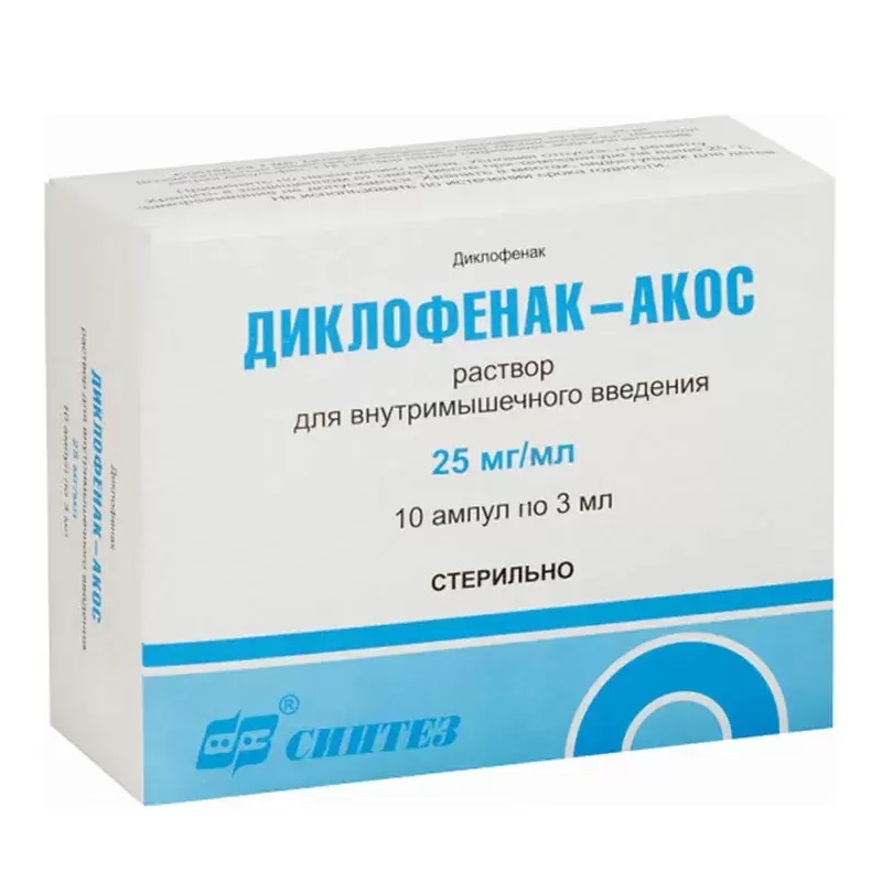 Диклофенак-АКОС 25 мг/мл раствор для внутримышечного введения 3 мл 10 шт