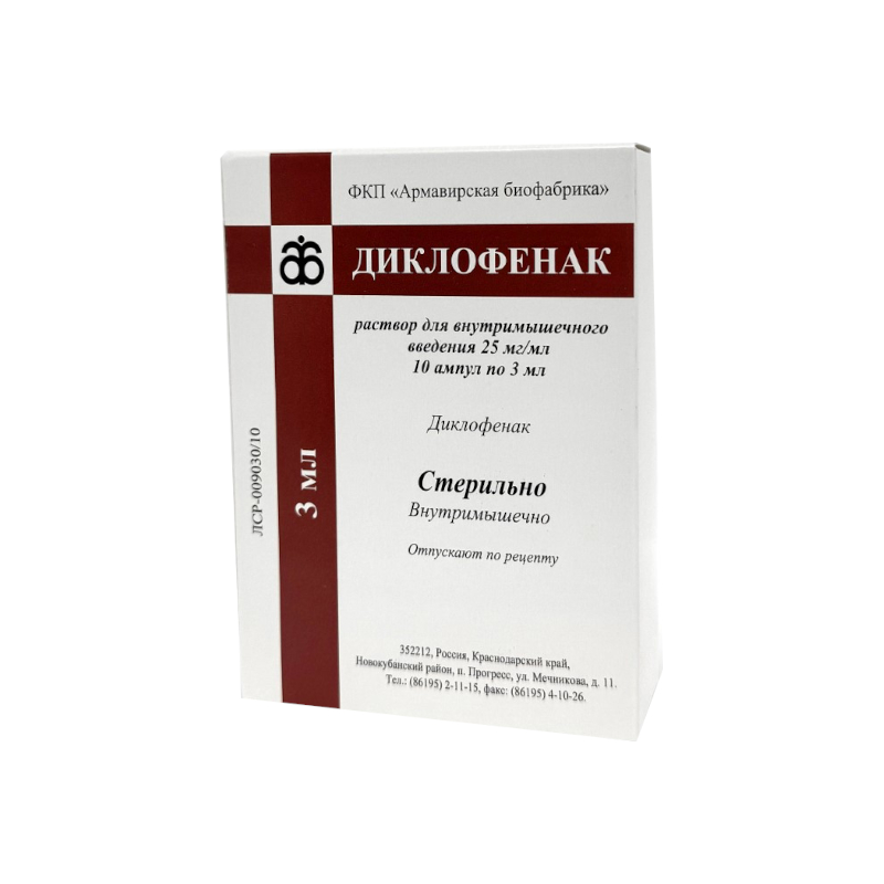 Диклофенак 25 мг/мл раствор для внутримышечного введения 3 мл 10 шт Армавирская биологическая фабрика