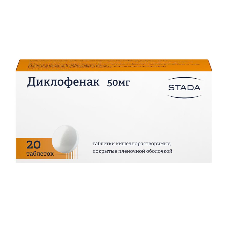 Диклофенак таблетки кишечнорастворимые, покрытые пленочной оболочкой блистер 50 мг 20 шт