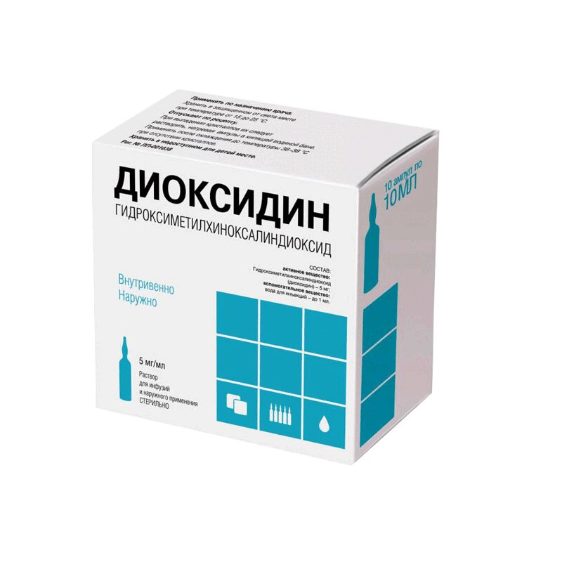 Инструкция по применению Диоксидин раствор 5 мг/ мл амп.10 мл 10 шт