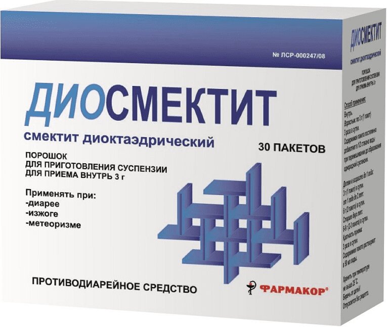Инструкция по применению Диосмектит порошок 3 гр. 30 шт