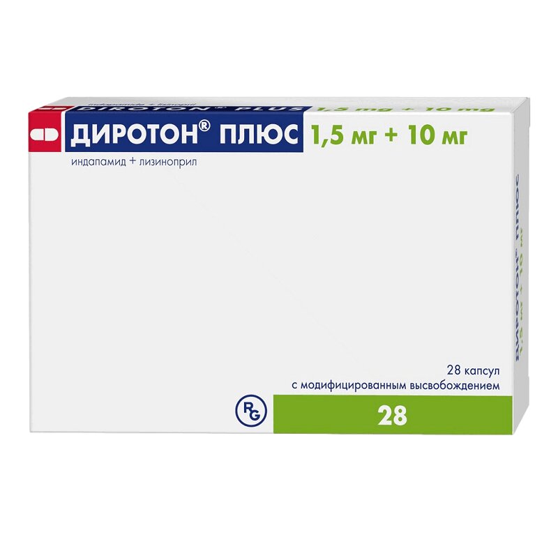 Диротон® Плюс представляет собой комбинированный препарат с фиксированными дозами лизиноприла и индапамида.