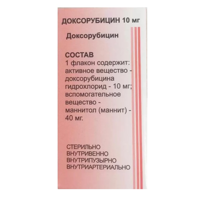 Доксорубицин 10 мг лиофилизат для приготовления раствора для внутрисосудистого и внутрипузырного введения 1 шт