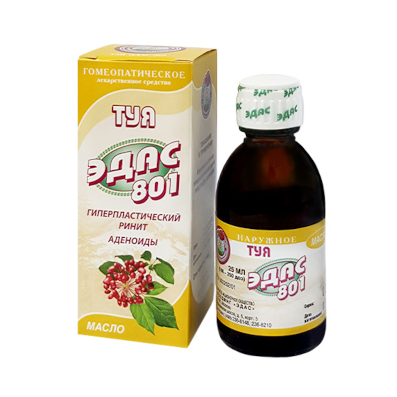 Туя Эдас-801 масло гомеопатическое для местного и наружного применения 25 мл 1 шт