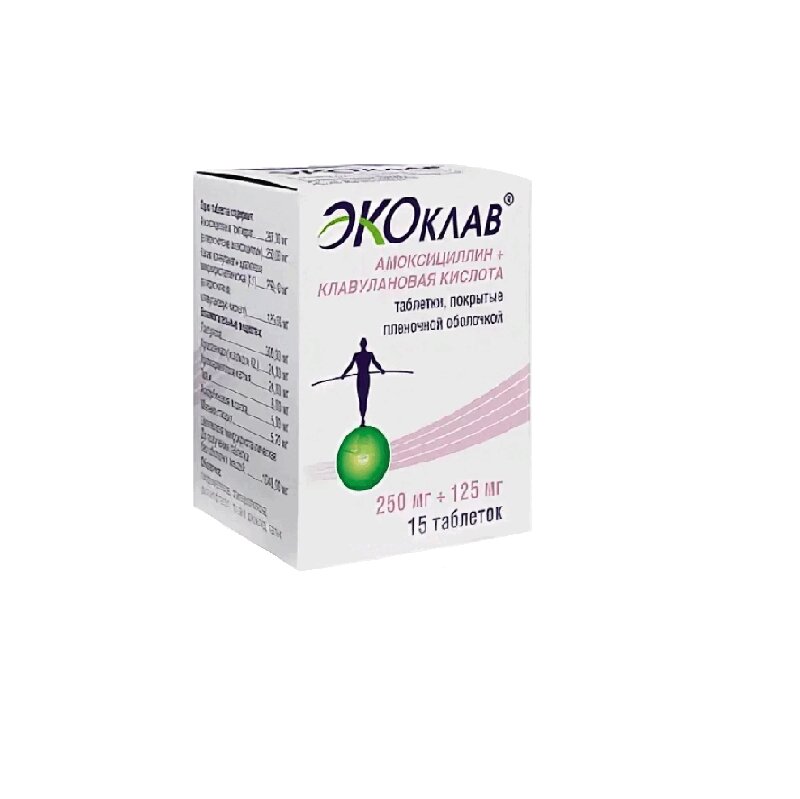 Инструкция по применению Экоклав таблетки 250 мг+125 мг 15 шт