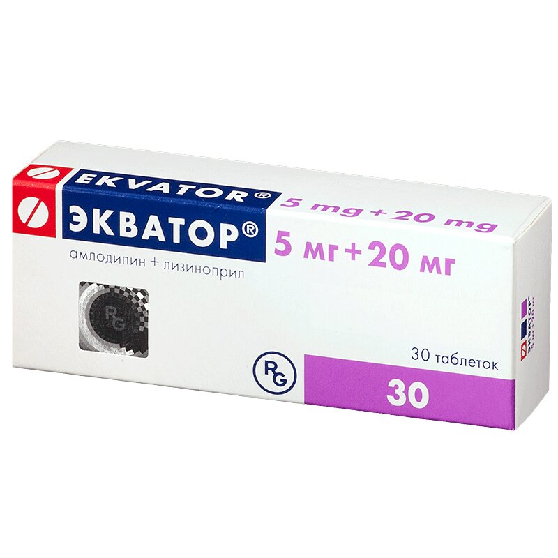 Экватор® представляет собой комбинированный препарат, содержащий действующие вещества - амлодипин и лизиноприл.