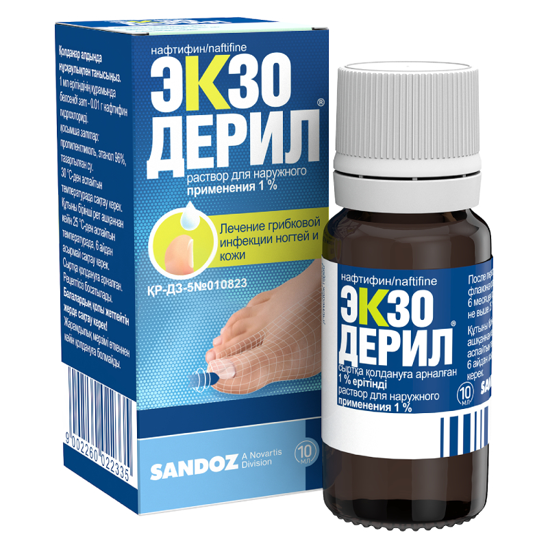 Противогрибковый препарат для местного применения, обладающий широким спектром противогрибковой активности. В низких концентрациях тербинафин обладает фунгицидной активностью в отношении дерматофитов (Trichophyton rubrum, Trichophyton mentagrophytes, Trichophyton verrucosum, Trichophyton violaceum, Trichophyton tonsurans, Microsporum canis, Epidermophyton floccosum), плесневых и определенных диморфных грибов (Pityrosporum orbiculare). Активность в отношении дрожжей носит фунгицидный или фунгистатический характер в зависимости от вида грибов.