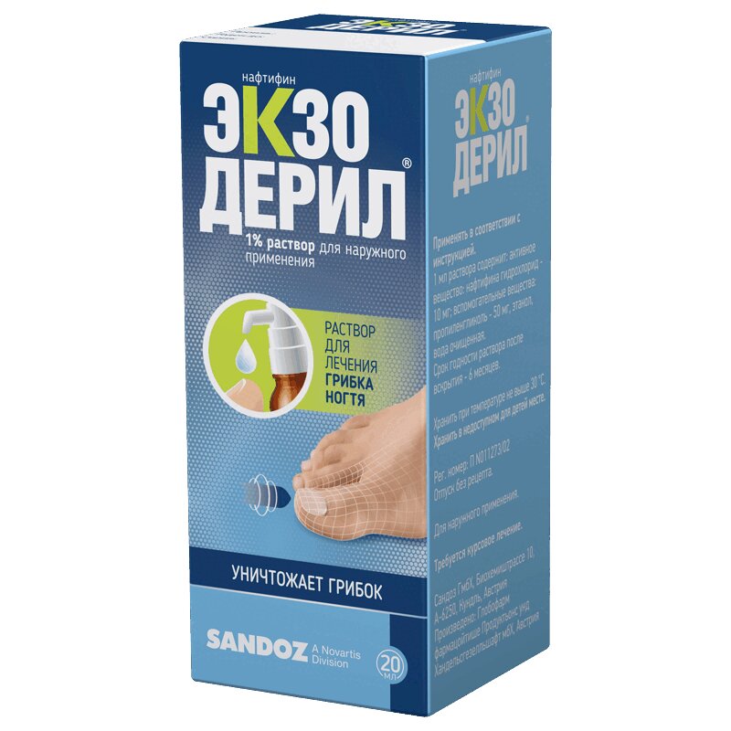 Инструкция по применению Экзодерил раствор для наружного применения 1% фл.20 мл