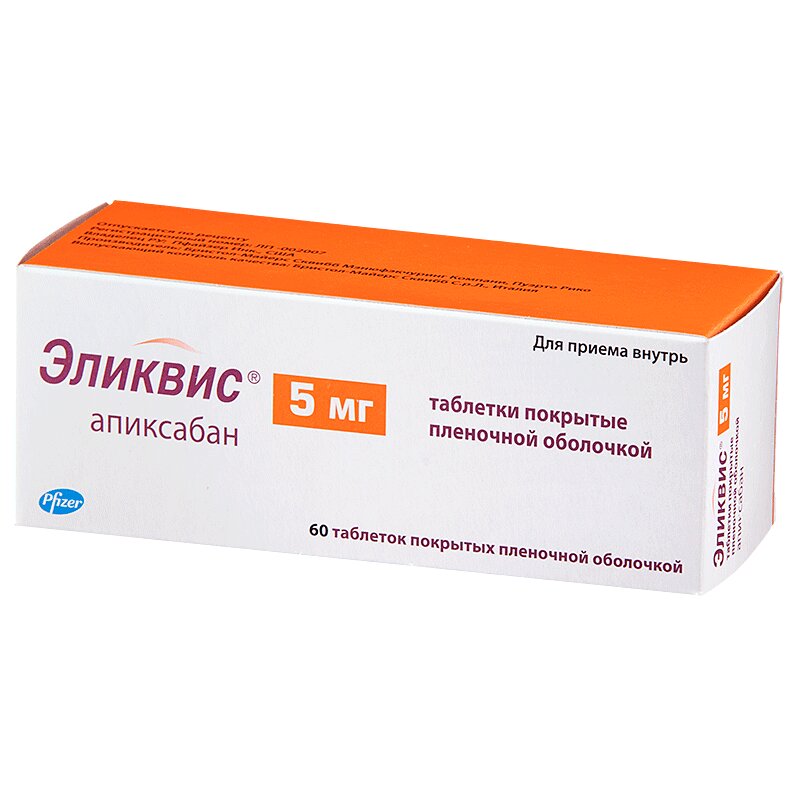 Эликвис таблетки покрытые пленочной оболочкой блистер из пвх/пвдх пленки 5 мг 60 шт