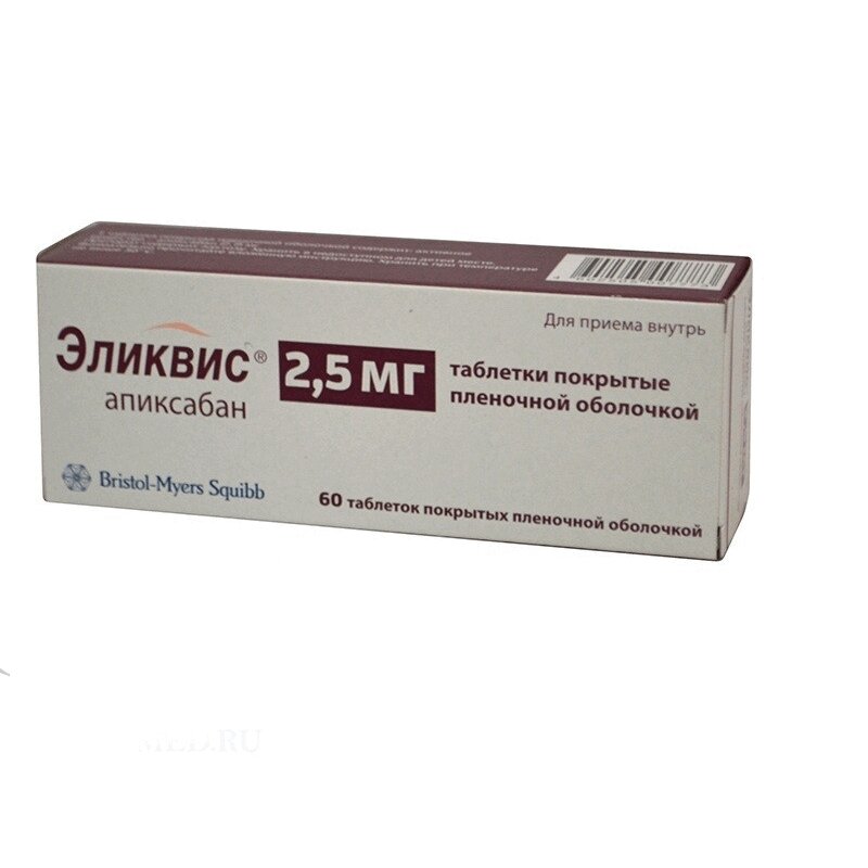 Эликвис таблетки покрытые пленочной оболочкой блистер 2,5 мг 60 шт