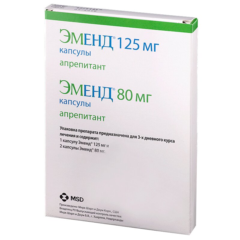 Инструкция по применению Эменд 80 мг капсулы 2 шт + 125 мг капсулы 1 шт