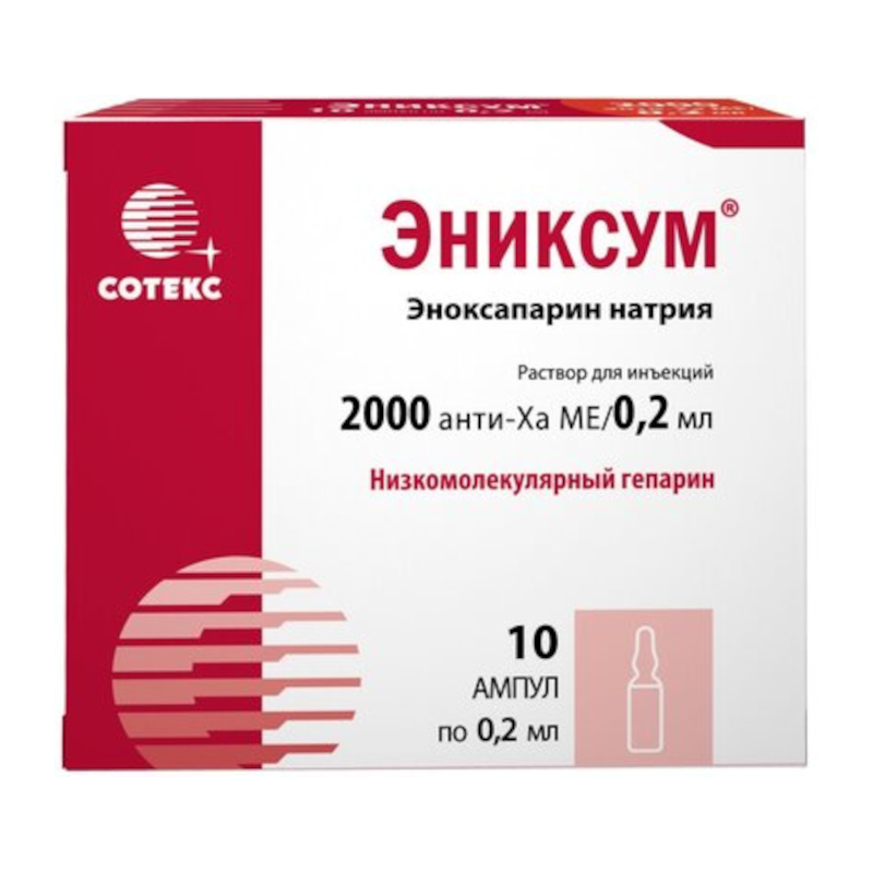Эниксум 2000 анти-Ха МЕ/0,2 мл раствор для инъекций ампула 0,2 мл 10 шт
