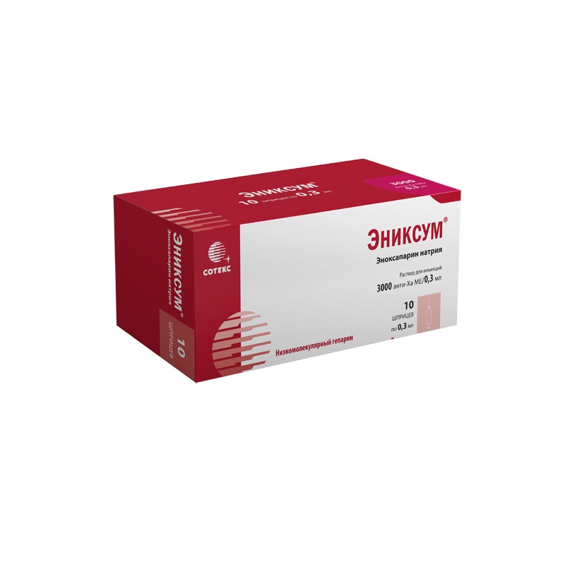 Эниксум раствор для инъекций 3000 анти-Ха МЕ/0,3 мл шприц 0,3 мл 10 шт