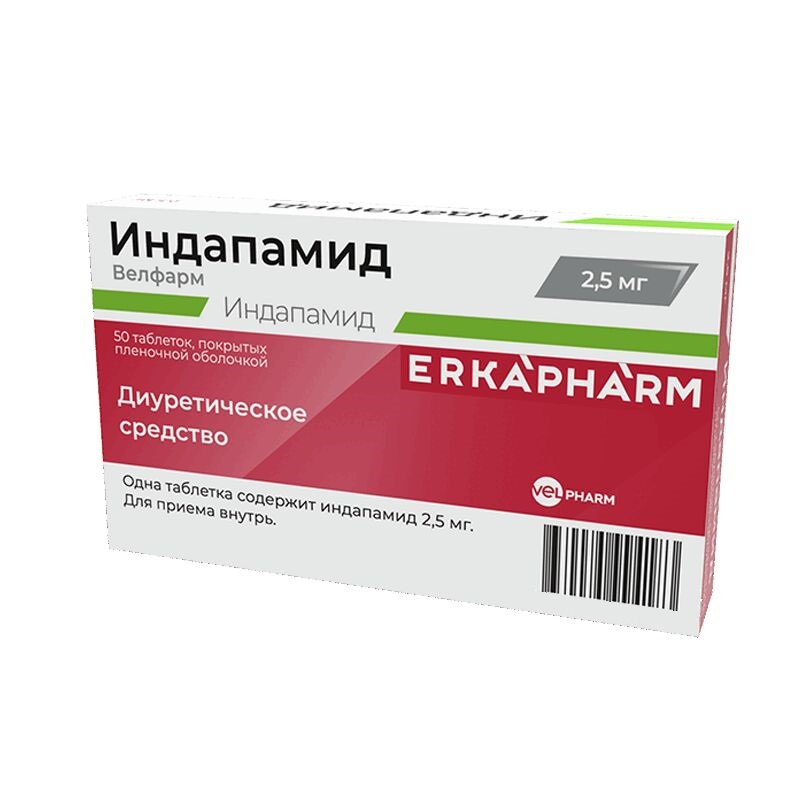 Инструкция по применению Эркафарм Индапамид Велфарм 2,5 мг таблетки 50 шт