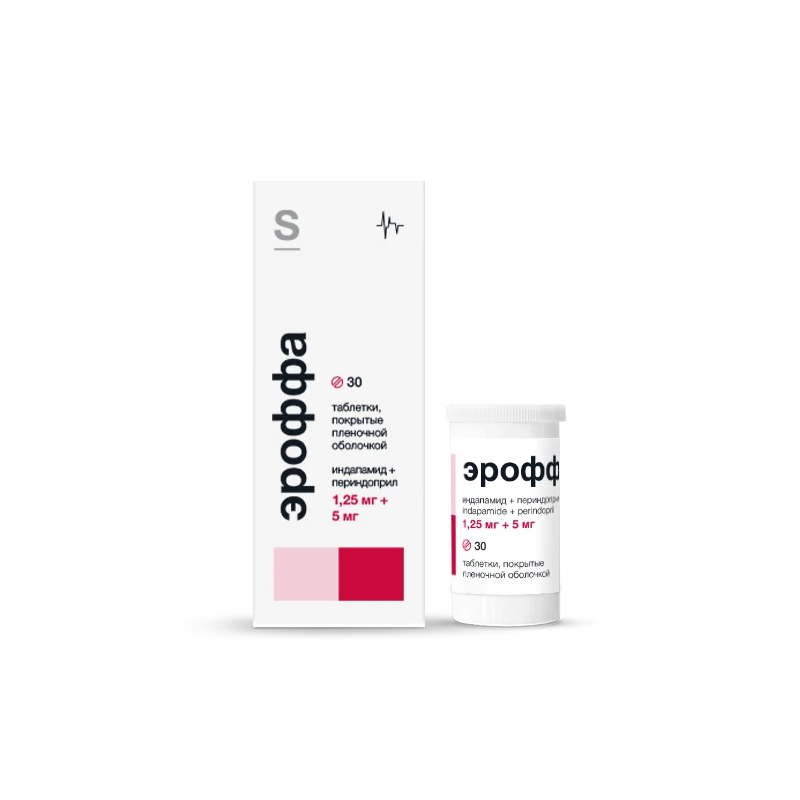 Препарат Эроффа предназначен для лечения эссенциальной гипертензии у пациентов, которым требуется терапия индапамидом в дозе 2,5 мг и периндоприлом в дозе 10 мг