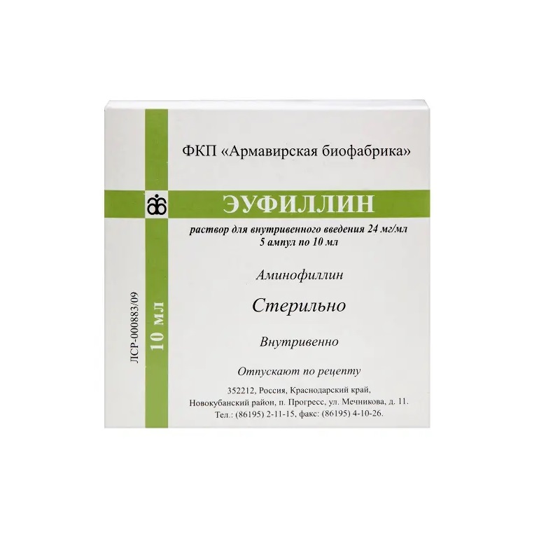 Эуфиллин 24 мг/мл раствор для внутривенного введения ампула 10 мл 5 шт Армавирская биологическая фабрика