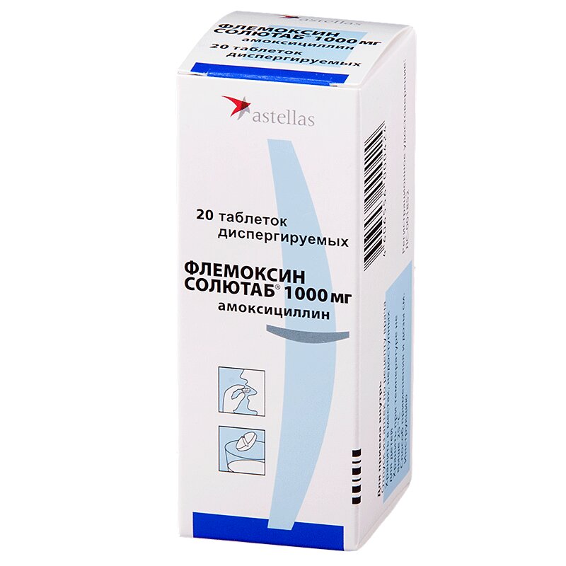 Инструкция по применению Флемоксин Солютаб таблетки 1000 мг 20 шт