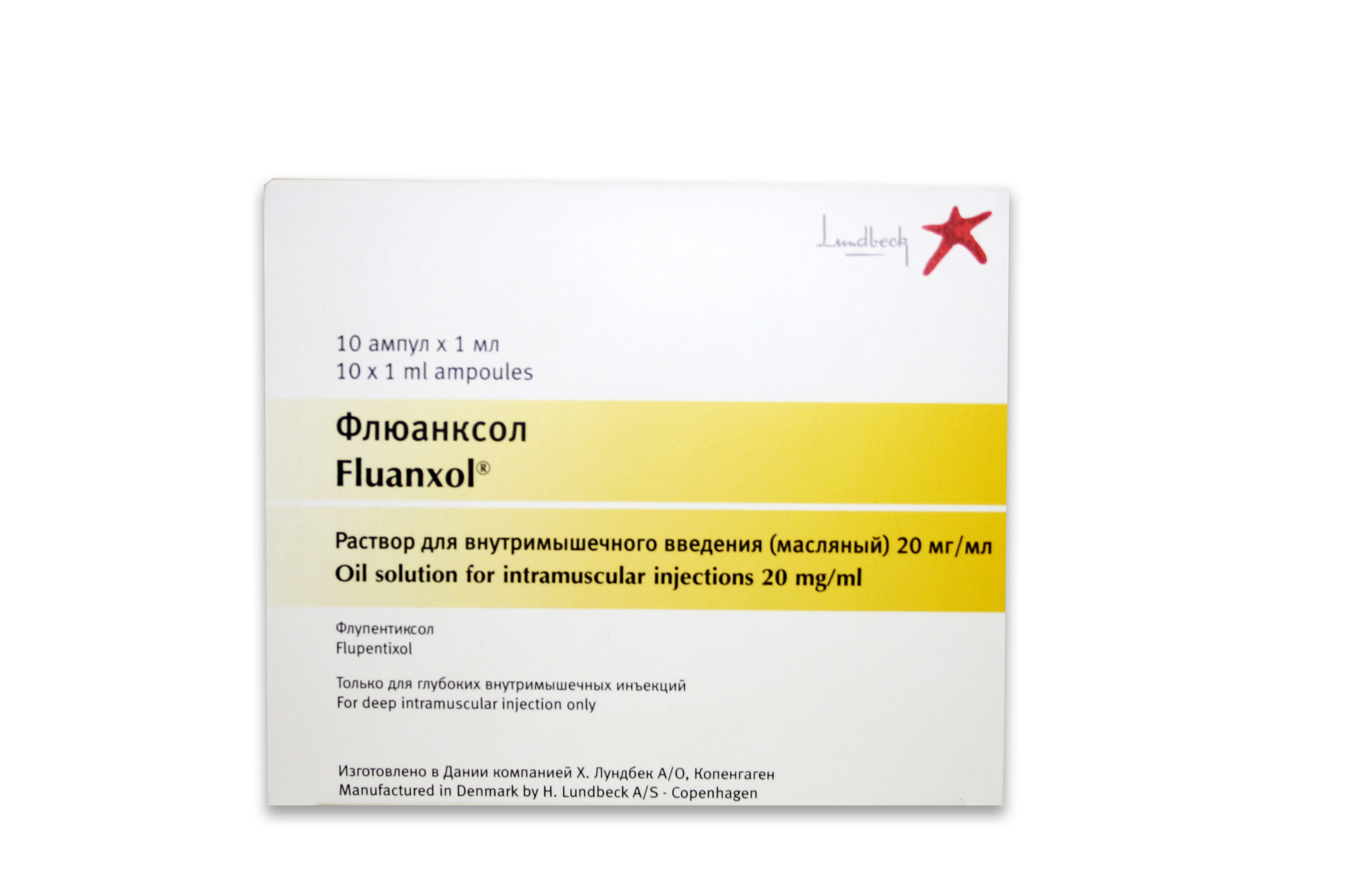 Флюанксол раствор для в/м введения масляный предназначается для депо-инъекций, являясь депонированной формой флупентиксола. В данной лекарственной форме препарат имеет значительно большую продолжительность действия, чем Флюанксол в форме таблеток, и позволяет проводить непрерывную антипсихотическую терапию, что особенно важно для лечения пациентов, не выполняющих врачебные предписания. Применение Флюанксола в форме раствора для в/м введения предотвращает частые рецидивы, связанные с произвольным прерыванием лечения пациентами при приеме препарата внутрь. Инъекции Флюанксола можно проводить с интервалами в 2-4 недели.