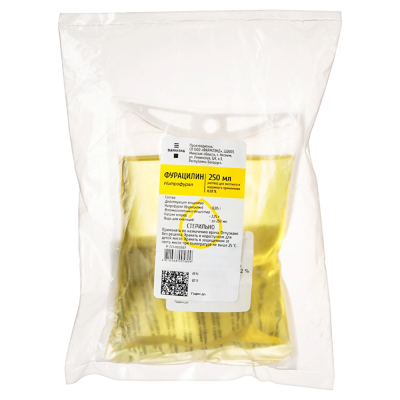 Фурацилин 0,02% раствор для местного и наружного применения 250 мл контейнер 1 шт Фармлэнд