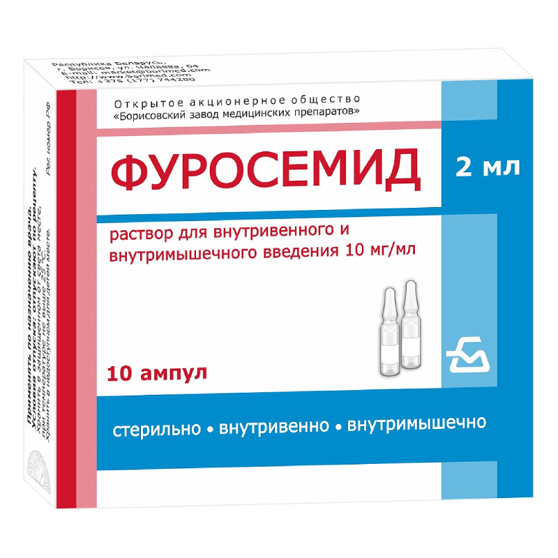 Фуросемид 10 мг/мл раствор для внутривенного и внутримышечного введения ампула 2 мл 10 шт БЗМП