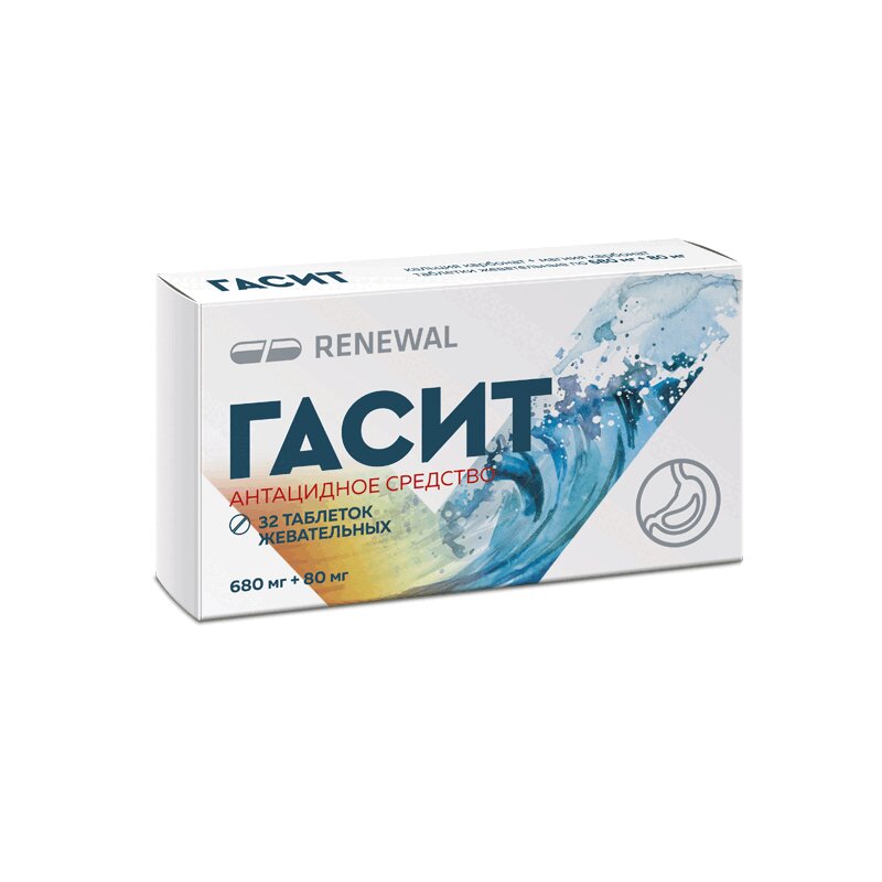 Гасит 680 мг+80 мг таблетки жевательные 32 шт