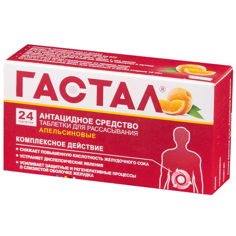 Инструкция по применению Гастал таблетки для рассасывания апельсин 24 шт