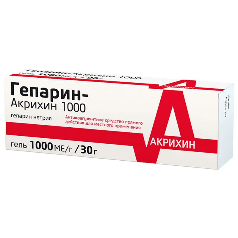Инструкция по применению Гепарин-Акрихин 1000 МЕ/г гель для наружного применения 30 г
