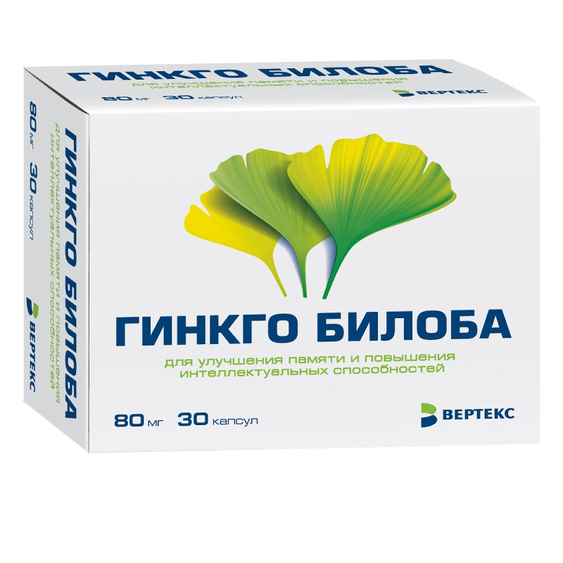 | сухой экстракт листьев гинкго двулопастного | 80 мг, |