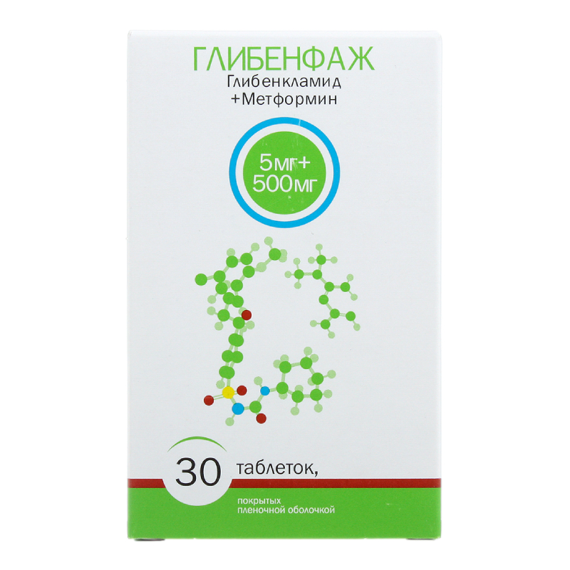 Глибенфаж 5 мг+500 мг таблетки покрытые пленочной оболочкой 30 шт