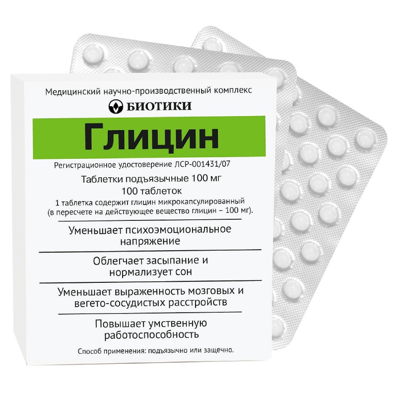 | глицин | 100 мг |