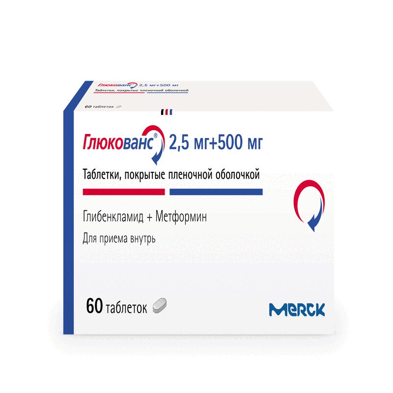Глюкованс 5 мг+500 мг таблетки покрытые пленочной оболочкой 60 шт