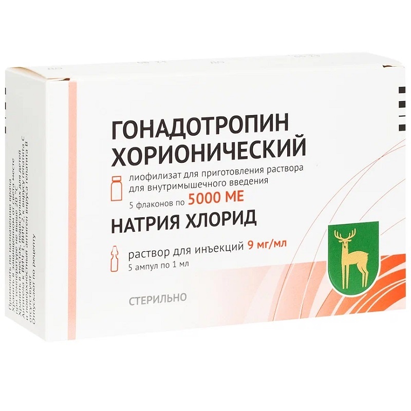 Гонадотропин хорионический лиофилизат для приготовления раствора для внутримышечного введения флакон 5000МЕ фл.5 шт