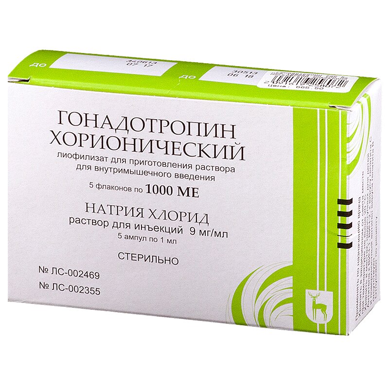 Гонадотропин хорионический лиофилизат для приготовления раствора для внутримышечного введения флакон 1000ЕД/ мл 1 мл 5 шт