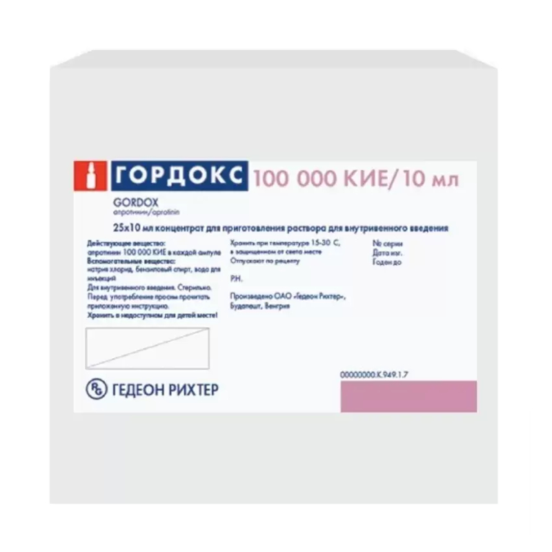Инструкция по применению Гордокс 10000 КИЕ/мл раствор для инъекций 10 мл 25 шт