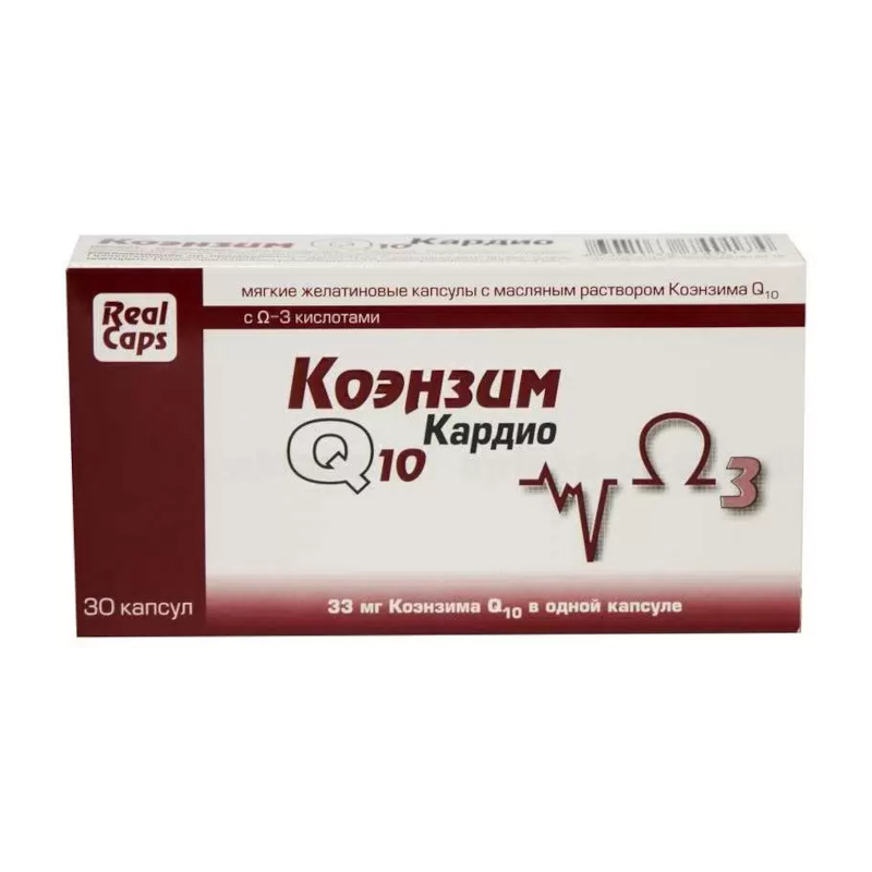 Соевое масло, оболочка капсулы (желатин, глицерин - агент влагоудерживающий, вода), коэнзим Q10 (убихинон), альфа-токоферола ацетат (витамин Е).