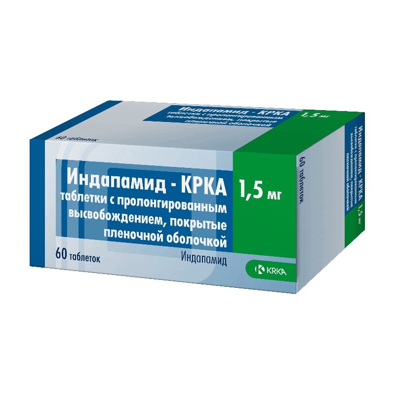 Индапамид-КРКА 1,5 мг таблетки покрытые пленочной оболочкой с пролонгированным высвобождением 60 шт