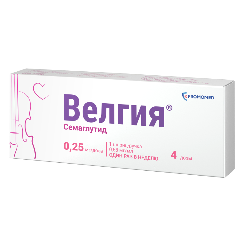 * каждая предварительно заполненная шприц-ручка для введения доз 0.25 мг и 0.5 мг семаглутида (1.5 мл) содержит 2 мг семаглутида.
