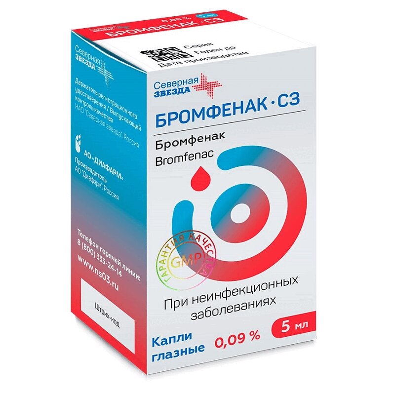 Бромфенак - нестероидный противовоспалительный препарат (НПВП), противовоспалительное действие которого реализуется за счет блокирования синтеза простагландинов при ингибировании циклооксигеназы 1 и 2.