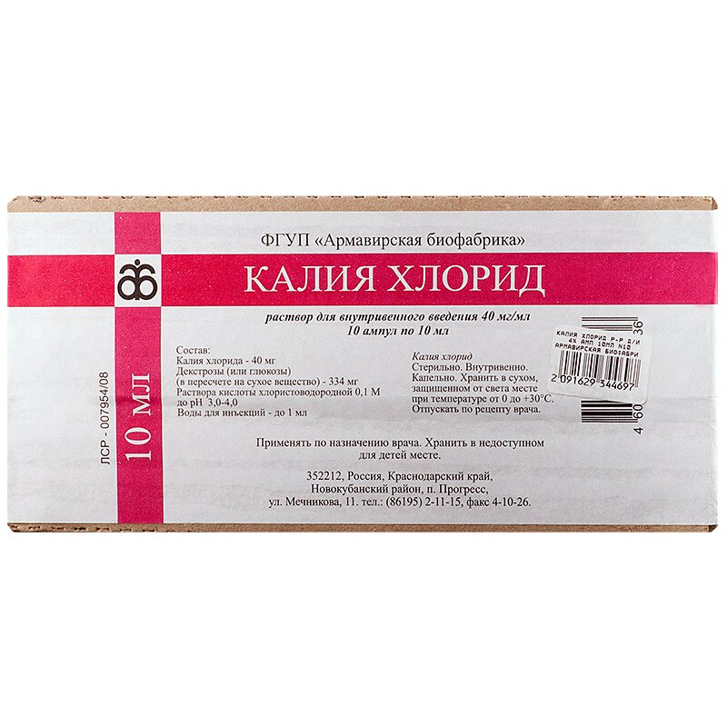 Калия хлорид 40 мг/мл концентрат для приготовления раствора для инфузий ампула 10 мл 10 шт Биосинтез