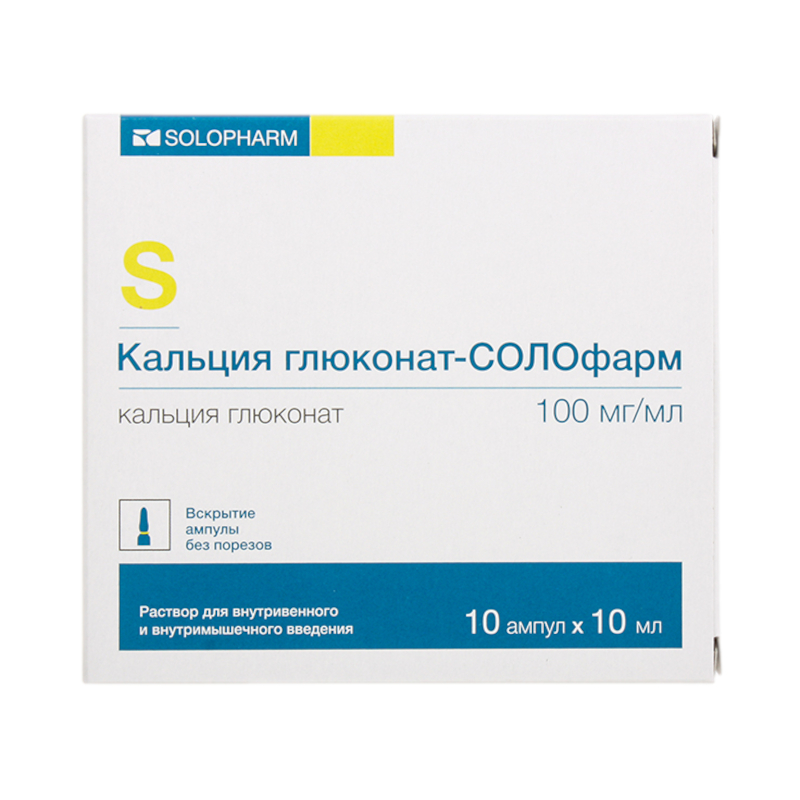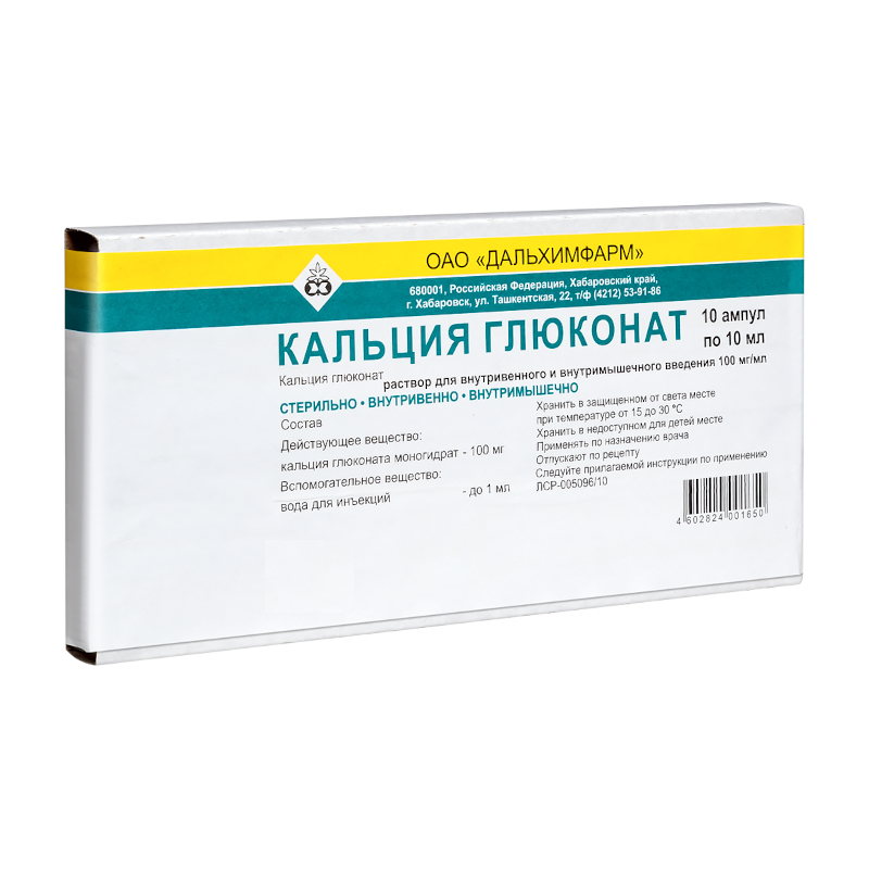 Кальция глюконат 100 мг/мл раствор для внутривенного и внутримышечного введения 10 мл 10 шт Дальхимфарм