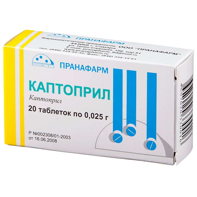 Каптоприл 0,025 г таблетки 20 шт Пранафарм