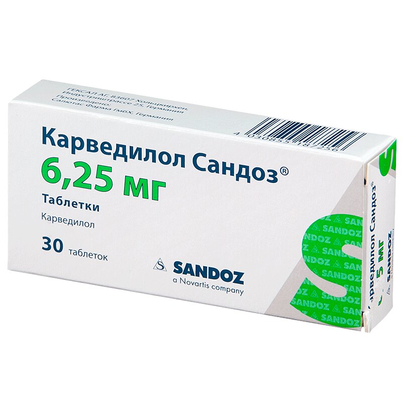 Карведилол Сандоз 6,25 мг таблетки 30 шт