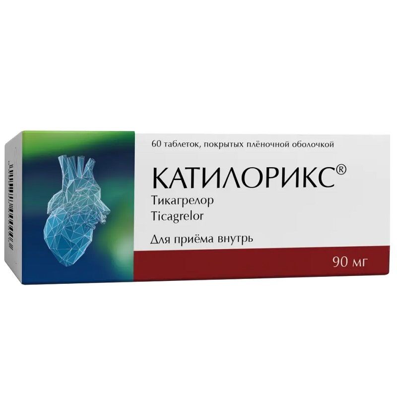 Препарат Катилорикс® содержит в своем составе тикагрелор, представитель химического класса циклопентилтриазолопиримидинов, который является пероральным, селективным и обратимым антагонистом Р2Y12 рецепторов прямого действия и предотвращает аденозиндифосфат-опосредованную Р2Y12-зависимую активацию и агрегацию тромбоцитов. Тикагрелор не предотвращает связывание аденозиндифосфата (АДФ), но его взаимодействие с Р2Y12 рецептором тромбоцитов предотвращает АДФ-индуцированную трансдукцию сигналов. Т.к. тромбоциты участвуют в инициировании и/или развитии тромботических осложнений атеросклероза, было показано, что ингибирование функции тромбоцитов уменьшает риск развития сердечно-сосудистых явлений, таких как сердечно-сосудистая смерть, ИМ или инсульт.