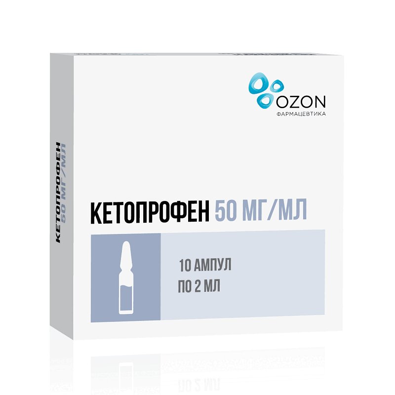 Кетопрофен 50 мг/мл раствор для внутривенного и внутримышечного введения ампула 2 мл 10 шт Озон