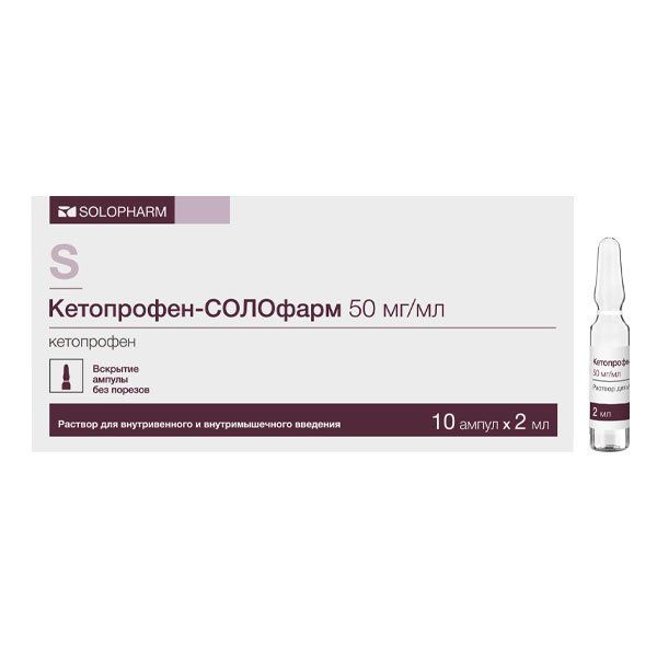 Кетопрофен-СОЛОфарм 50 мг/мл раствор для внутривенного и внутримышечного введения 2 мл 10 шт